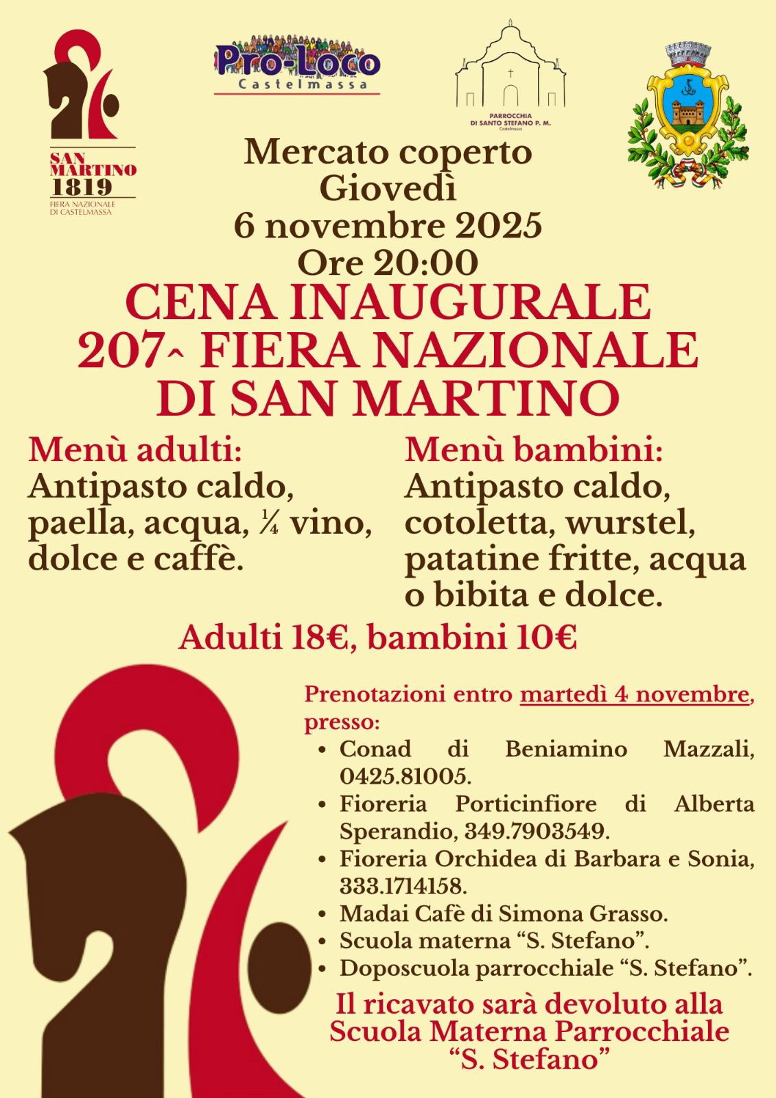 • Cena di Beneficenza a favore della Scuola Materna Parrocchiale “S.Stefano” di Castelmassa